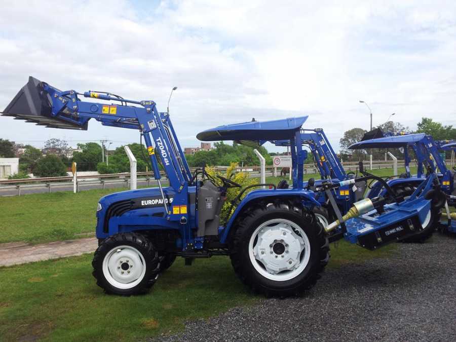 Tractor con motor 4 cilindros, potencia de 50 HP, dirección hidráulica.